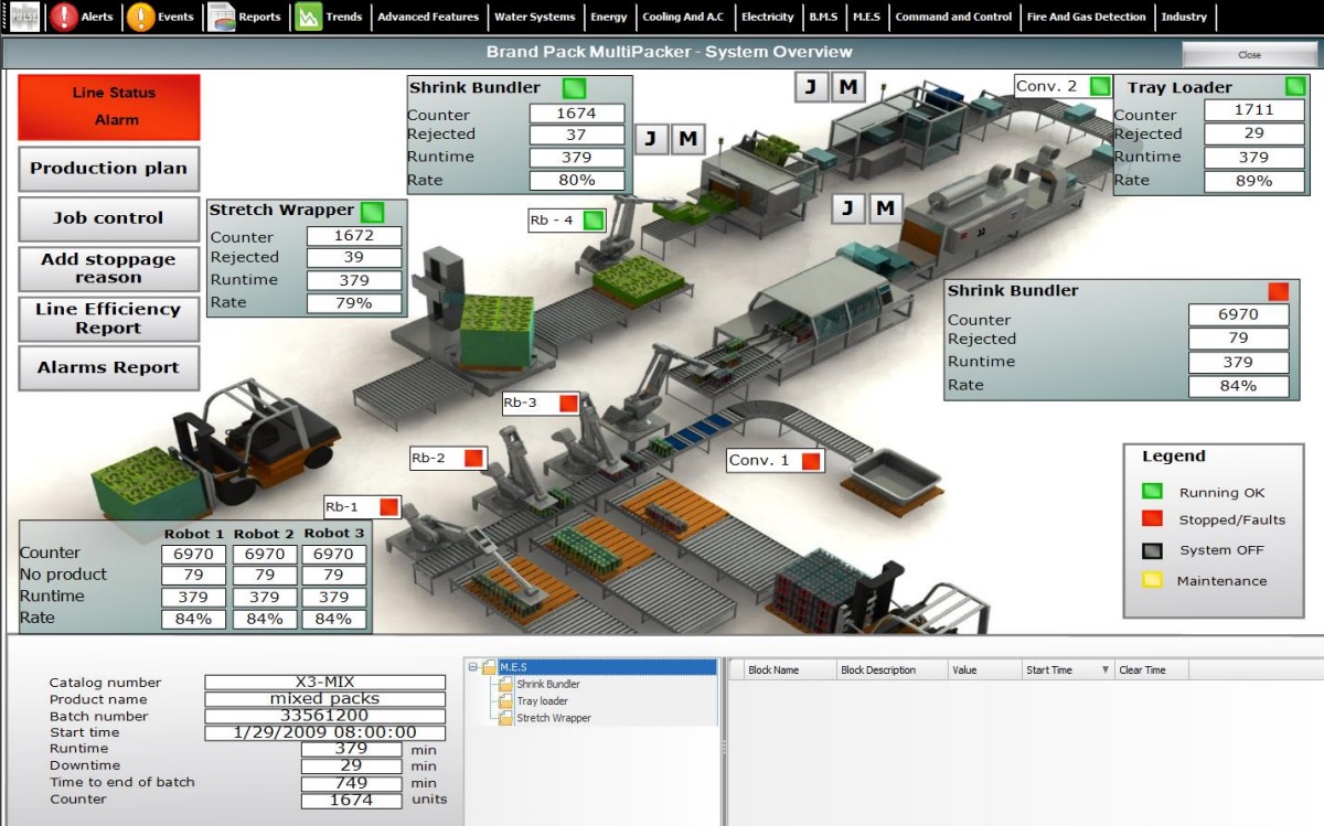 Se aplica en Plantas Industriales, Sistemas de Fuego y Seguridad, Sistemas de manejo de edificios (BMS), tiene incorporado más de 200 drivers de comunicación (MODBUS RTU, que ahorran el costo de un OPC Server.